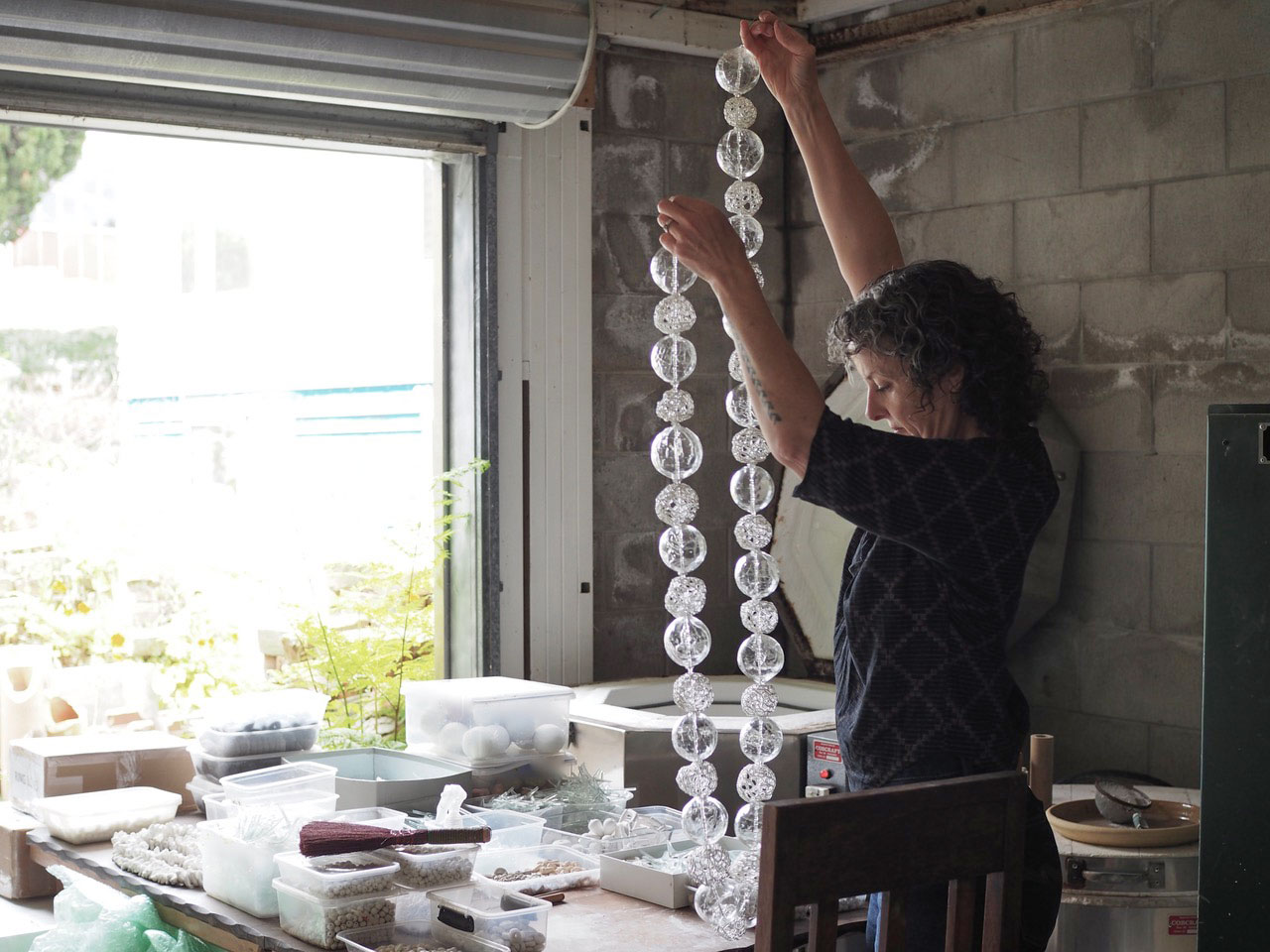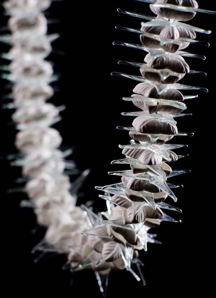 Emily Siddell’s work melds together the Polynesian influence found in her urban Tāmaki Makaurau upbringing, a passionate love of the glass medium, and an interest in domestic handicrafts such as knitting and crocheting. Siddell works with ceramic, glass, and wire to create enchanting flora and fauna works of delicate beauty, partly inspired by her subtropical garden.
